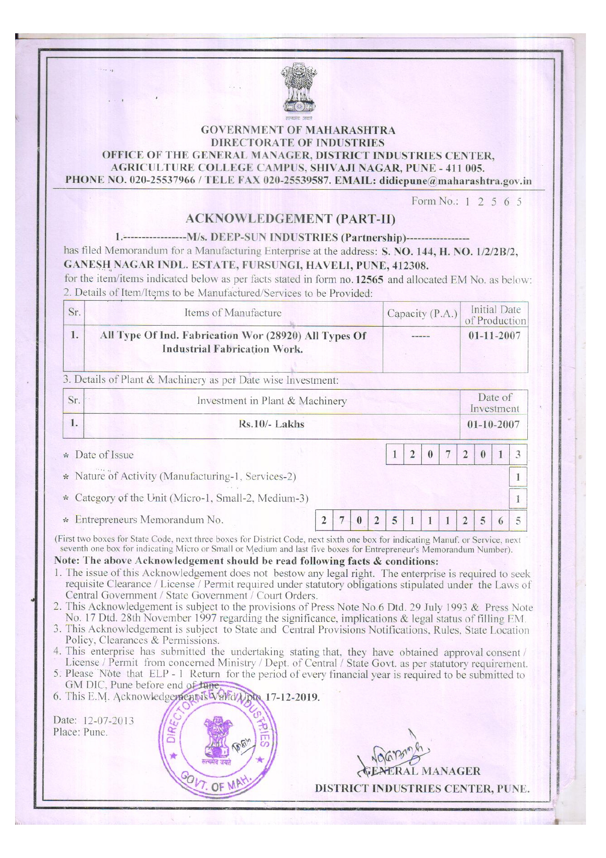 → Fabrication & Assembly Space:- 35000 sq. ft
